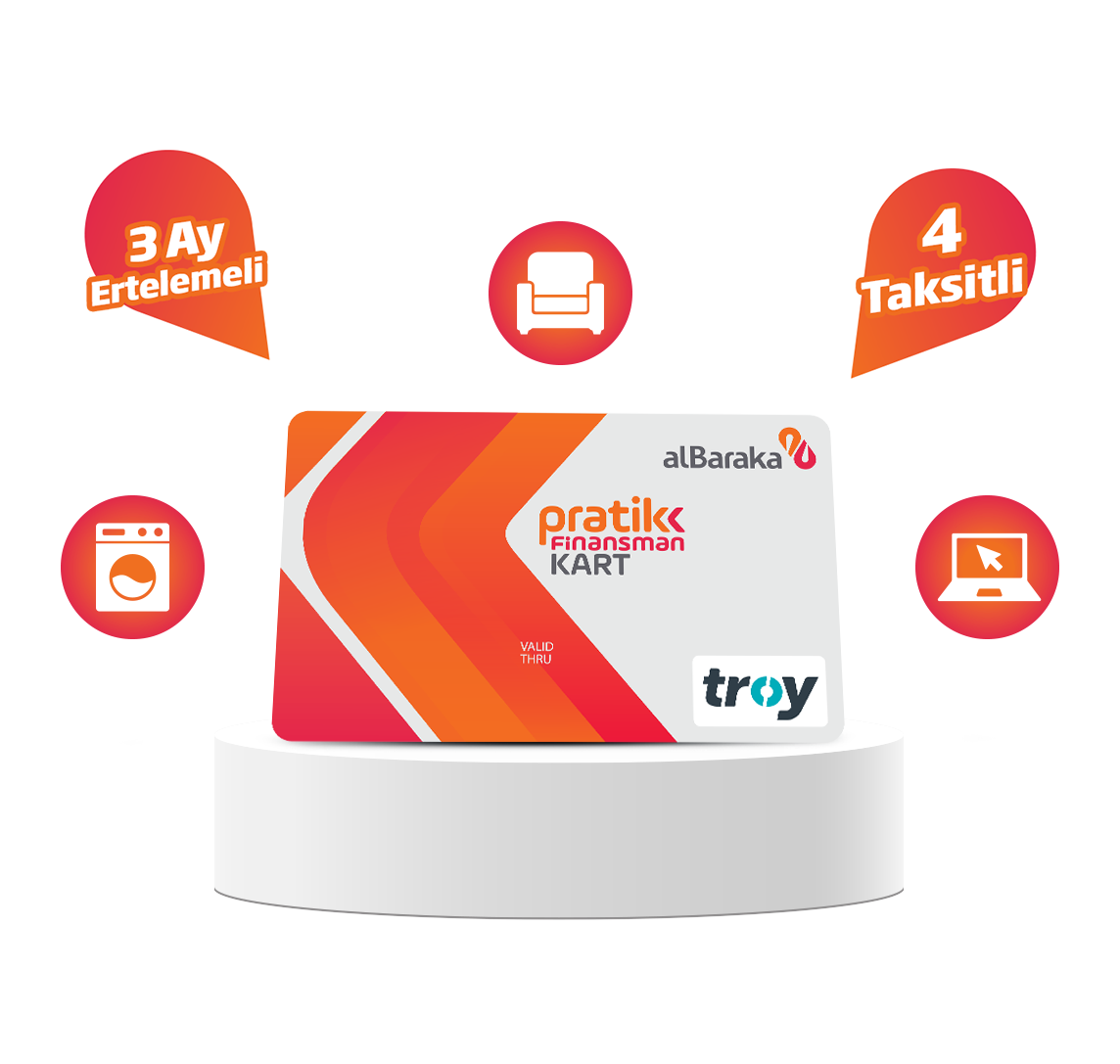 Pratik Finansman Kart, ihtiyaç finansmanınızı cebinize taşıyan, yurtiçi tüm POS ve online alışverişlerinizde kullanabileceğiniz, Albaraka’nın yepyeni bir ürünüdür.