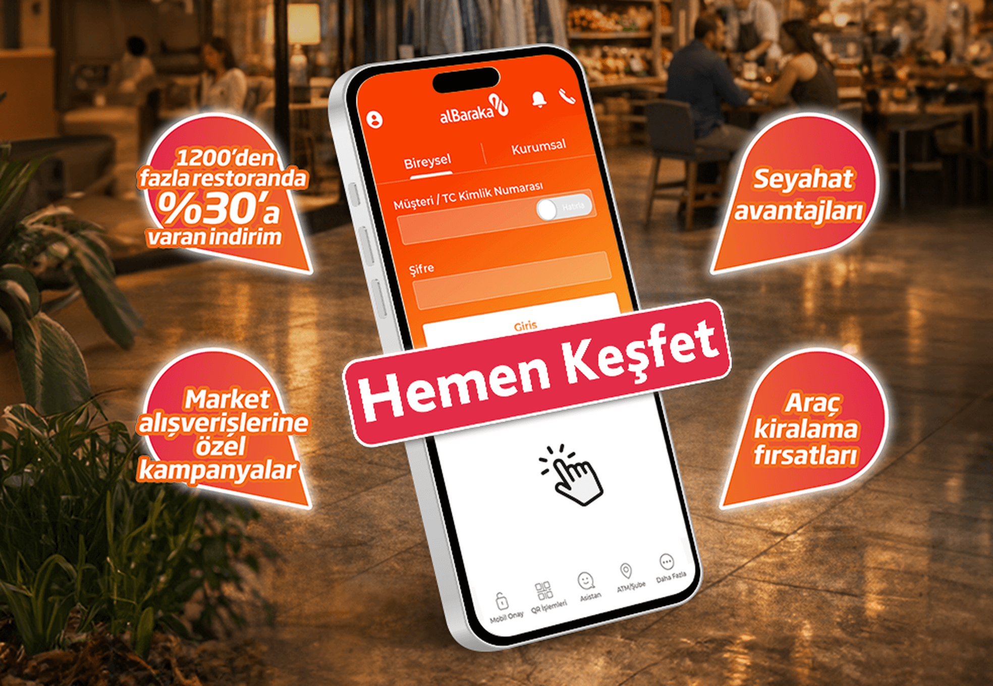 “Seçkin Fırsatlar” ile hayatın her alanından avantajlar sizi bekliyor! Albaraka Mobil’de şimdi Seçkin Fırsatlar ile havaalanından restorana, market alışverişinden giyime kadar birçok indirim ve ayrıcalıklı kampanya fırsatları sizi bekliyor. Yüzlerce kampanya size özel fırsatlarla bir tık ötenizde!